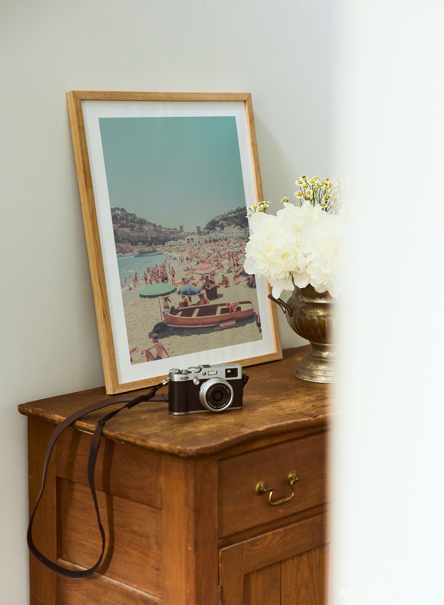 Our design studio artfully enhanced the photograph’s original, lively colour palette to harmonize with the aesthetic of the La Dolce Vita collection. The enhancement process involved balancing the myriad of bright tones from the swimwear and umbrellas while boosting the overall warmth to create a cohesive, sun-drenched feel. This gives the entire image a soft, nostalgic glow, as if viewing the perfect summer day through the fond lens of memory.